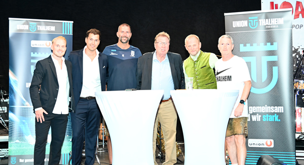 v.l.n.r.: Sportlicher Leiter Stefan Haslgruber, Obamann Patrick Balange, Jugendleiter Christoph Kammerstätter, Bürgermeister der Marktgemeinde Thalheim Andreas Stockinger, Moderator und Union Thalheim Mitglied Christof Steinkogler, Sektionsleiter Karl Klement.