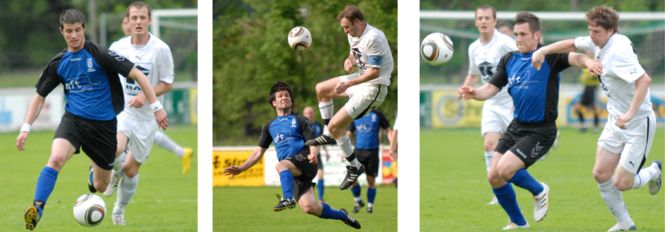 Nach zuletzt zwei Niederlagen in Folge konnte auch gegen Tabellennachzügler SV Kieninger-Bau Bad Goisern nicht auf die Siegesstraße zurückgefunden werden. Roch es bis kurz vor Schluß noch nach der großen Sensation (1 : 3 Rückstand), so zog die Pflug-Elf noch einmal den Kopf aus der Schlinge und trat mit einem Punkt im Gepäck die Heimreise aus Goisern an. Gut gestärkt vom U-14 Meistertitel kletterten 14 Mann in den Bus ins Salzkammergut. Auch lichtete sich das Lazarett wieder etwas, gab doch ’el pulga’ Eder nach gut 4 Wochen verletzungsbedingter Pause sein Comeback. Und die Mannen rund um Kapitän Fischer waren heiß, die Schmach der letzten Wochen vergessen zu machen. Gleich zu Beginn rollende Angriffe auf das Gehäuse von Heimkeeper Michael Stögner, die aber vorerst noch nichts einbrachten. In Minute 12 schickte ’Mr. Nachrichten’ Fischer ’Salto’ Berthold auf die Reise und mit viel Coolness schob dieser das Leder am heraus eilenden Goalie in die Maschen. Ein Auftakt nach Maß, der für mehr Sicherheit sorgen sollte. Doch bis auf Michael Berthold, der kurz nach seinem Führungstreffer das 2 : 0 auf dem Fuß hatte, breiten wir für die Gäste aus Thalheim den Mantel des Schweigens aus. Kein Spielfluß, eklatante Abspielfehler, Spiel ohne Ball nicht vorhanden, etc. – die Liste ließe sich extrem ausweiten. Und so kommt auch ein inferiorer Gegner ins Spiel und bringt die Gäste in arge Verlegenheit. Lukas Islitzer aus stark abseitsverdächtiger Position bzw. Ronald Haas aus einem Freistoß besorgen sogar den 2 : 1 Pausenstand. Nach einer Halbzeitpredigt bzw. div. Umstellungen von Trainerguru Pflug wollte man in Durchgang 2 die große Aufholjagd starten. Trotz spielerischer, konditioneller und kämpferischer Überlegenheit wollte und wollte der Ausgleich nicht gelingen. Vielmehr war es die Heimelf, die einen der wenigen Entlastungsangriffe für einen Corner nutzte und nach einem Kopfball sogar auf 3 : 1 erhöhte (Minute 66). Mit dem Rücken zur Wand stellten die Gäste vom Thalbach nun auf totale Offensive. Doch es wurde ein Wettlauf gegen die Zeit, wollte doch trotz hochkarätiger Chancen der Anschlußtreffer nicht gelingen. Komplett in die Defensive gedrängt, haderten die Gastgeber auch immer mehr mit dem äußerst guten Referee Lieb und ließen sich auf viele unnötige Diskussionen ein. Das ganze hatte mehrere gelbe Karten zur Folge bzw. gipfelte mit der roten Karte für den eingewechselten Felix Egger (Minute 89). Kurz davor war es ’Kopfballungeheuer’ Daniel Rözsa, der das Wunder von Goisern einläutete und auf 2 : 3 verkürzte (Minute 89). Auf Grund der vielen Wechsel und Kartenermahnungen waren wir bereits in Minute 94, als ’Mr. Hammer’ Florian Eder einen Traumfreistoß zum 3 : 3-Remis in die Maschen zimmerte. Trainer Pflug: ich kann nicht sagen, ob ich mich über diesen Punkt freuen kann. Gegen Bad Goisern hätte ich auf die Wende gehofft. Leider haben wir großteils an die miserablen Leistungen der Vorwoche(n) angeschlossen. Positiv aber die Moral der Mannschaft, die am Schluß wie eine Natter zugebissen hat. Wir haben uns sofort nach Spielende zusammengesetzt und die Partie in einem Bad Ischler In-Lokal analysiert. Mit zwei Siegen in den ausstehenden beiden Partien können wir hoffentlich Platz 3 halten – das ist unser Ziel. |