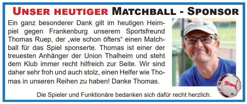 Nach Wiederbeginn merkte man den Frankenburger an, dass sie unbedingt den Ausgleich erzielen wollten. Aber an diesem Tag hielt unsere Elf allen Angriffsversuchen stand. Überdies hatte man mit Philipp Neuwirth einen überragenden Rückhalt. Vor allem ein "Big Save" nach einem Drehschuss ins lange Eck, wurde von ihm in Weltklassemanier mit den Fingerspitzen entschärft. Als dann Mister Thalheim Bimbo Steiner in der Nachspielzeit, nach einer Traumkombination, dass erlösende 2:0 erzielten, brachen alle Dämme. Mit bengalischen Feuer wurde die Mannschaft gefeiert.