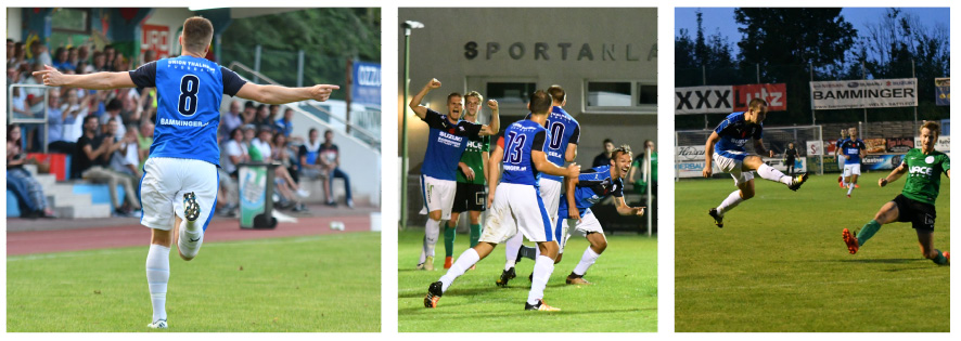 Von der ersten Minute an merkte man deutlich, dass unsere Mannschaft deutlich entschlossener und selbstbewusster zur Sache ging, als noch vor einer Woche in Aschach. Und so dauerte es auch nicht lange, ehe Akos Gillich für das erste zählbare Resultat des Abends sorgte. Nach einem schönen Pass in die Mitte hatte der Goalgetter keine Probleme, den Ball im Kasten der Gäste unterzubringen. Die Führung hielt leider nur etwa zehn Minuten – In der 19. Minute nutzte der starke Puckinger Schlüsselspieler Stefan Spielbichler die erste wirkliche Gästechance eiskalt aus und überhob Patrick Übleis zum 1:1 Ausgleich. Sechs Minuten vor der Pause war es unser Mittelfeldmotor Marius Fanatan, der mit einem schönen Weitschuss für die neuerliche Führung für Thalheim sorgte. Aber auch dieses Mal sollte diese nicht lange halten, Puckings großgewachsener Verteidiger Patrick Miesenböck köpfte quasi mit dem Pausenpfiff zum 2:2 ein.