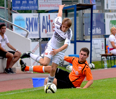 Am Freitag, 20. Juli um 19:00 Uhr bestritt unsere neuformierte Kampfmannschaft das erste Testspiel gegen Wallern 1b. Schon nach 4 Minuten schlug es nach schöner Vorarbeit vom 18-jährigen "Eigengewächs" Steiner Bernhard durch Besnik Ibrahimi im Wallerner Tor ein. Unsere Mannschaft erspielte sich in der Folge eine klare Feldüberlegenheit und es dauerte nicht lange bis es zum zweiten Mal im Gehäuse der Trattnachtaler einschlug (12.). Neuzugang Kovarik Daniel bediente Schwarzlmüller Stefan ideal, der kaltschnäuzig zum 2:0 einschoss. In der 22. Spielminute war es abermals soweit. Nach einem Diagonalpass in den Strafraum des stark aufspielenden Steiner Bernhard köpfte Schwarzlmüller Stefan unhaltbar ins lange Kreuzeck und besiegelte dadurch seinen Doppelpack. Nach einem ungeahndeten Foul an unserem neuen Abwehrhünen Duvnjak Stefan nützten die Gäste ihre erste Tormöglichkeit zum 3:1. Nach dem 4:1 (34.) durch Neuzugang Gillich Akos agierte unsere Mannschaft in einigen Situationen unkonzentriert. Die Folge war das 4:2 in der 40. Minute.
