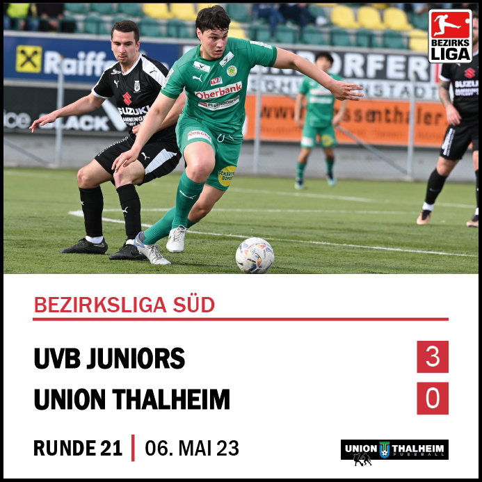 Leider keine Punkte gab es für die Thalheimer Jungs bei den UVB Juniors. Auf dem Vöcklamarkter Rasen gab es für die Union Thalheim schon seit mehreren Jahren keinen Erfolg mehr. Auch dieses Mal gelang es nicht diese Negativserie zu beenden. Trainer Thomas Stranzinger hatte es auch nicht leicht, beide Innenverteidiger haben sich kurzfristig aus gesundheitlichen Gründen abgemeldet. So musste wie schon so oft die Aufstellung und die taktische Ausrichtung kurzfristig geändert werden.