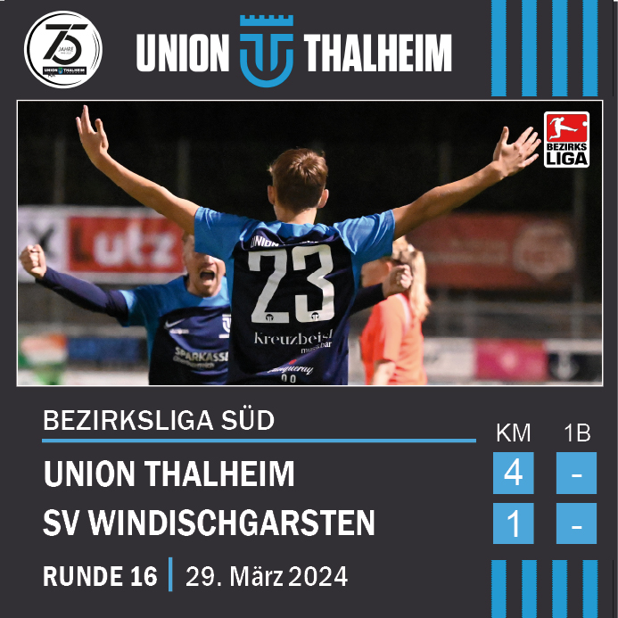 In einem packenden Fußballspiel trafen am Osterwochenende die Union Thalheim und Windischgarsten aufeinander, wobei Thalheim letztendlich mit einem 4:1-Sieg den Platz verließ. So wurde die neue Dress gleich erfolgreich eingeweiht. Möge sie noch viele Punkte einbringen!