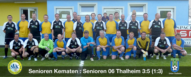 Am Freitag dem 18.05.2012 waren die Thalheimer Senioren 06 bei den Senioren von Kematen am Innbach zu einem Freundschaftsspiel eingeladen. Union Thalheim musste auf Wolfgang Weingartner, Dragan Nedelkovic, Yilmaz Sinirtas und Stefan Stinglmair verzichten. Ausgeholfen hat uns dafür Ex-Kapitän der Thalheimer Kampfmannschaft und hoffentlich bald Mitglied der Senioren 06 Karl Klement.