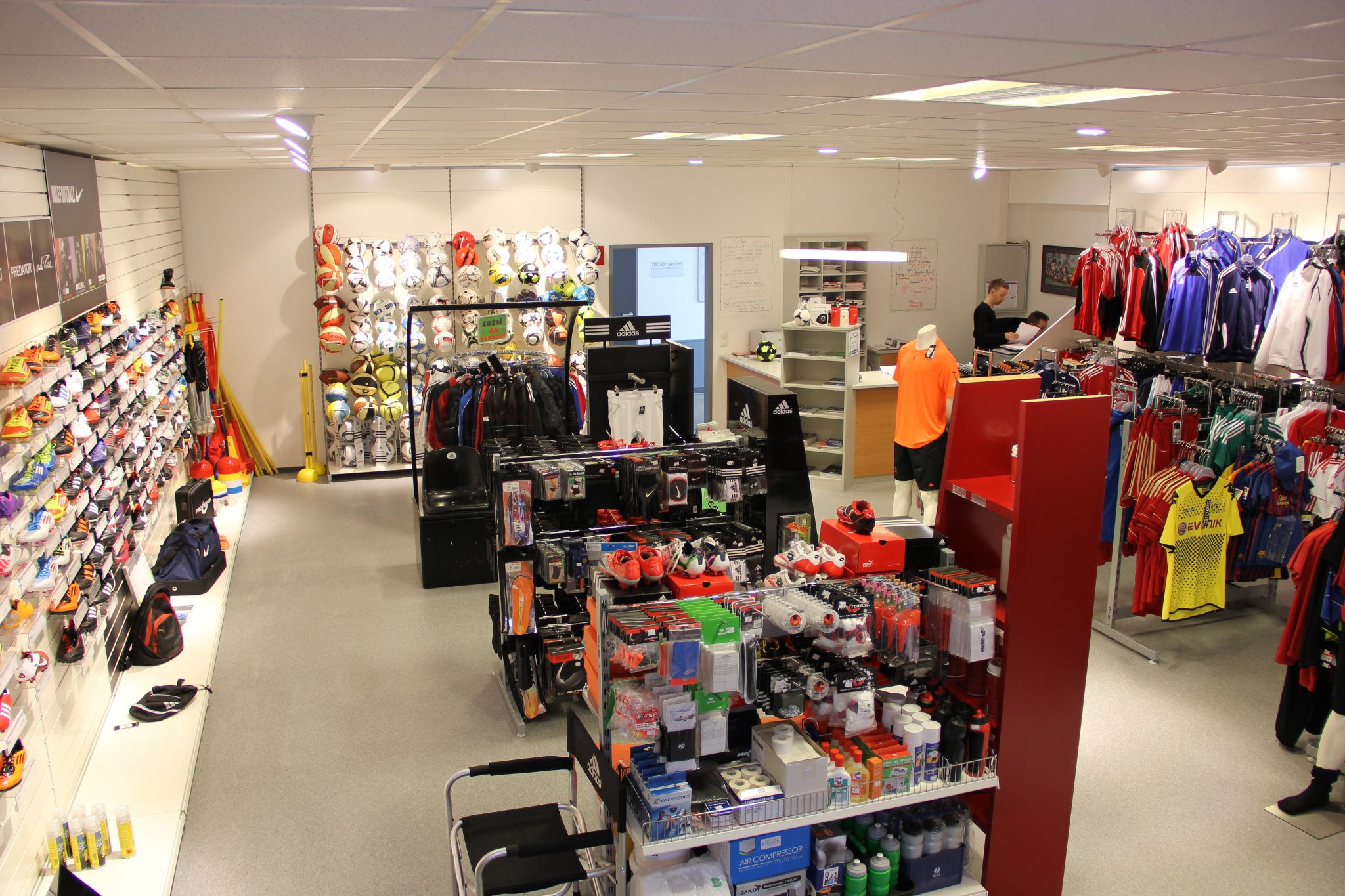 - Vollsortiment Teamsport, sprich Fußball, vor Ort – 130m² Erlebniswelt Fußball