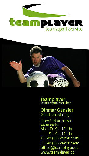 Union Thalheim spielt den „Doppelpass“ in den nächsten 3 Jahren mit der Firma TEAMPLAYER aus Wels. Der Sportausrüster wird vorerst bis 2015 unser Partner sein. Geschäftsführer Othmar Ganster einigte sich mit Thalheims Funktionären Thomas Waage und Thomas Oelschlägel auf eine erfolgreiche Kooperation und zeigte sich danach sehr zufrieden: „Union Thalheim ist ein sehr wichtiger Partner für uns. Wir freuen uns bereits auf die Zusammenarbeit.“ Auch Thalheim-Marketing-Chef Thomas Waage war begeistert: „Mit der tollen, fachlichen Beratung und der schnellen Bestellabwicklung der Firma TEAMPLAYER kann kein anderer Sportausrüster in der Umgebung mithalten. Das war uns immer sehr wichtig und bei TEAMPLAYER funktioniert das bestens“.