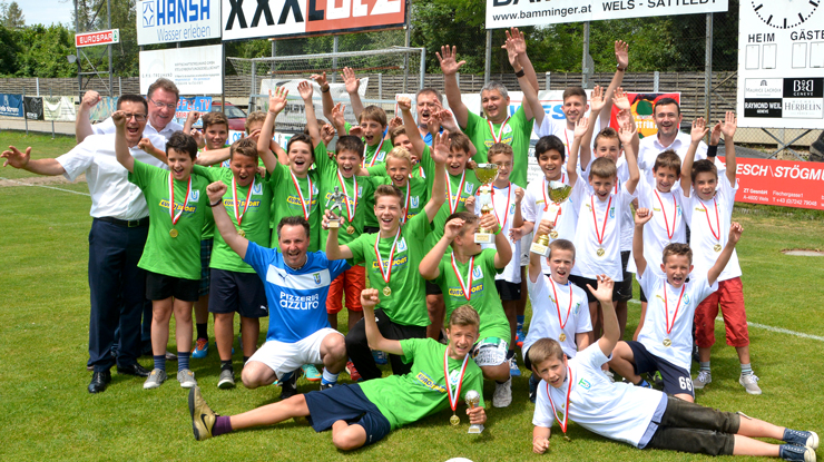 Die U13-Mannschaft unter der Leitung von Trainer Tamás Zoltan darf sich nach einem spannenden Saisonverlauf über den Meistertitel in der Unterliga freuen. Mit 8 Siegen und 2 Niederlagen ließen die Thalheimer Jungs St. Marienkirchen/Schärding mit 24 Punkten hinter sich und durften mit 3 Punkten Vorsprung die Meisterschaft bejubeln. Nebenbei darf sich Stürmer Tim Williams mit 22 erzielten Treffern die Torjägerkrone aufsetzen. Herzliche Gratulation an die gesamte Mannschaft und an Erfolgstrainer Tamás Zoltan!