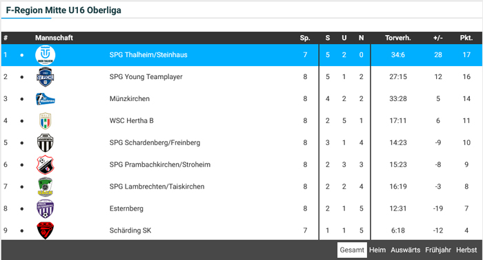 Unsere U16 SPG Thalheim/Steinhaus ist in der Frühjahresmeisterschaft der Oberliga, Ost-Mitte-Süd U16 mit einer hervorragenden Leistung frühzeitig den Meistertitel sichern.